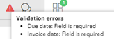If a field has an invalid value, a message in a red may be displayed. This is also shown in the top right of the coding screen with a red exclamation mark. If you hover the mouse over it, you can see which fields generated an error: