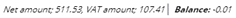 Before sending, the balance at the bottom of the lines eventually needs to be 0.00: