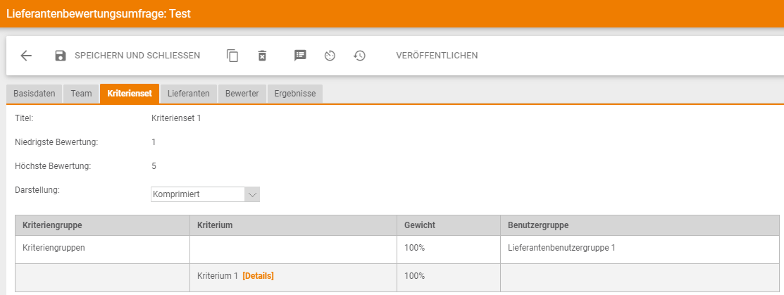 The Criteria Set tab provides an overview of which criteria set is relevant for the survey.
