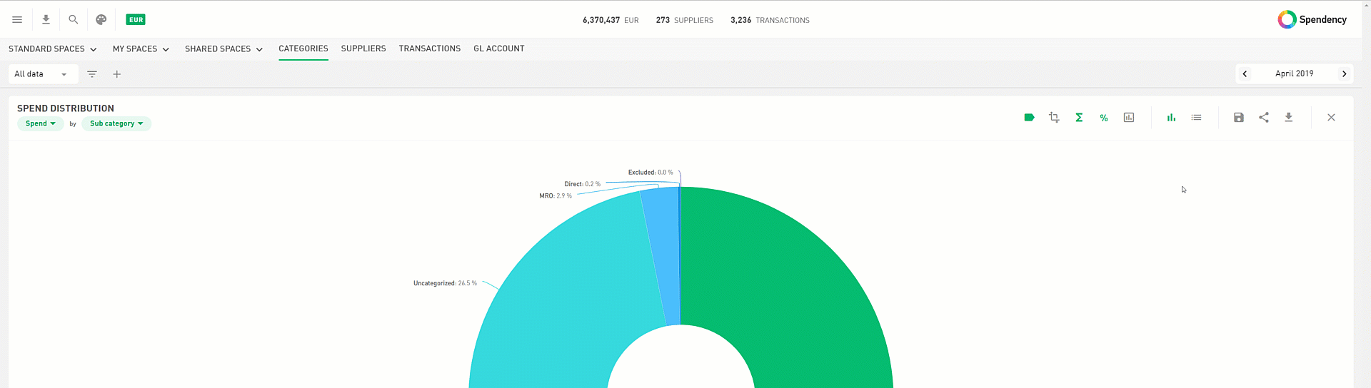 You can export the underlying data visible on the analysis page. To export data, click on the download arrow in the left corner. If you have applied filters, it will affect the content of the file. For example, if you have applied a filter for a specific year and a specific supplier, the data will be limited to those parameters.