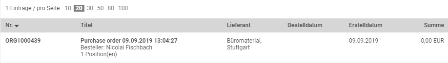 You can send the order(s) directly to the supplier by clicking the Send order(s) button. The prerequisite for this is that all mandatory entries for purchase orders have already been maintained in the requirement item(s).