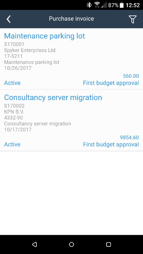 Using the button with the funnel at the top right allows you to find a specific transaction by filtering for example by supplier.