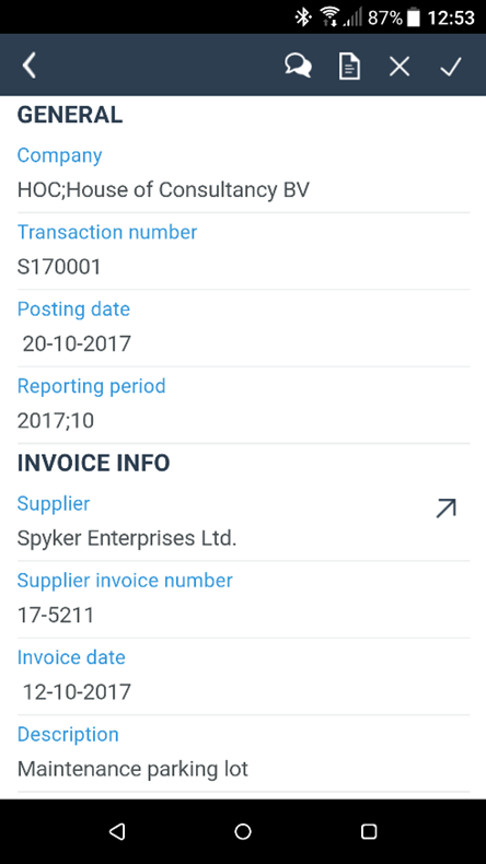 When a specific transaction is opened, you will see not buttons for approving or rejecting. You can of course see the attachments and the remarks.