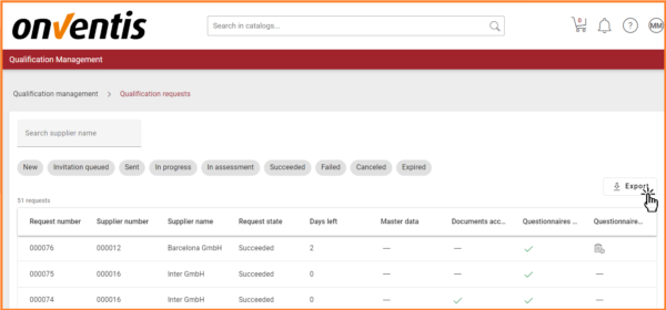 3. Export of qualification request and questionnaire overview: