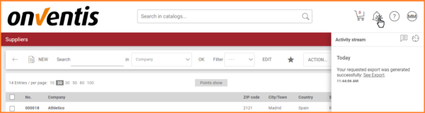 Also, within the âActivity streamâ section, the user is notified when the export is ready and can access the file directly.
