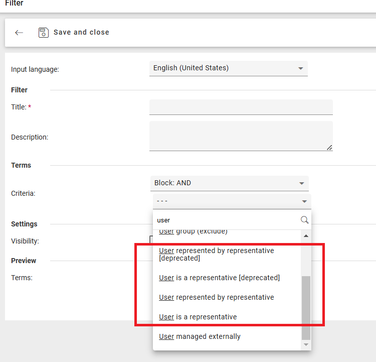 User is a Representative â Renamed to "User is a Representative (Deprecated)"