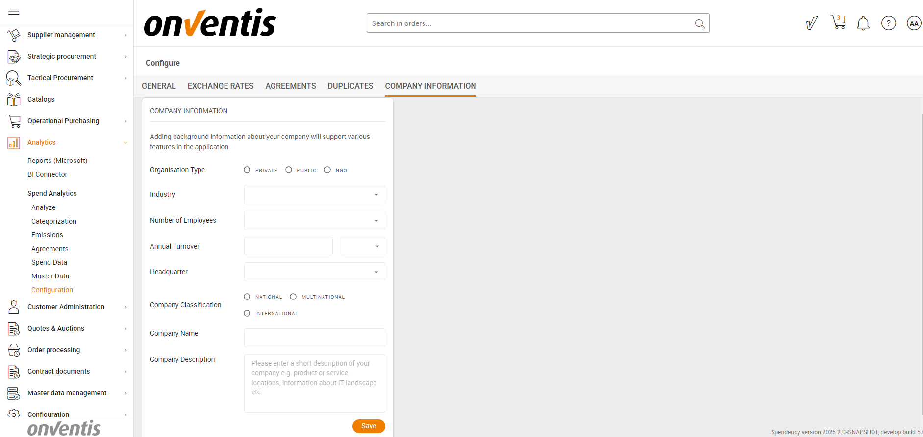 For Onventis Buyer customers using Onventis Analytics, you will find the company information in âConfigurationâ.