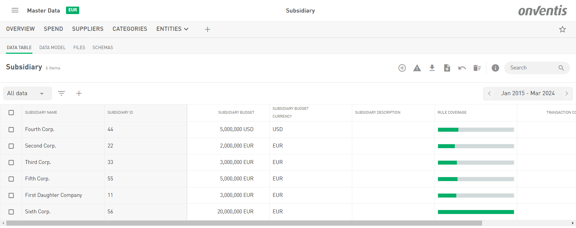 Budget: You allocate 20 Million EUR to the subsidiary “Sixth Corp.” for the fiscal year.